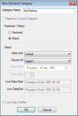 The New Demand Category dialog is used to set up a new Demand Category which can be: