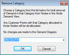Dropdown list Contains only categories that are present in the Demand at Nodes grid view. Demand in the category to be removed will be de-allocated from nodes.