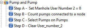 In the example network in question, it is invalid to connect a pump object directly to another pump object. This series of SQL queries makes use of the user defined field User Number 2 to count connections to pumps. At the end, any pump that is connected directly to another pump will be selected.