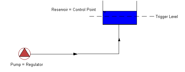 Under this scenario, the pump will be switched on when the pressure at RHighL (depth in reservoir RHighL) drops below the trigger level of 2m. When the level in the reservoir rises to 2m the pump will be switched off by default.