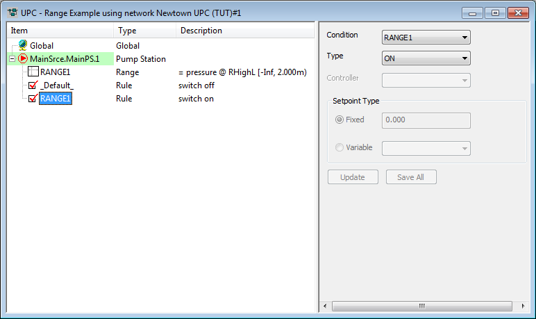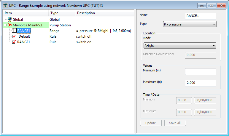 - Range 1: Defines Reservoir RHighL as the control point with a maximum value of 2m.