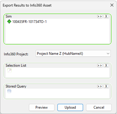 | Upload | Uploads your simulation results to your Info360 Asset tenant. |