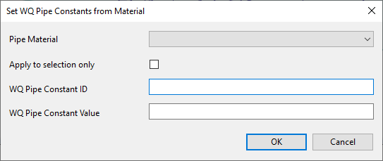 The Set WQ Pipe Constants from Material dialog is used to set the WQ pipe constant ID and value for a given set of pipe materials.