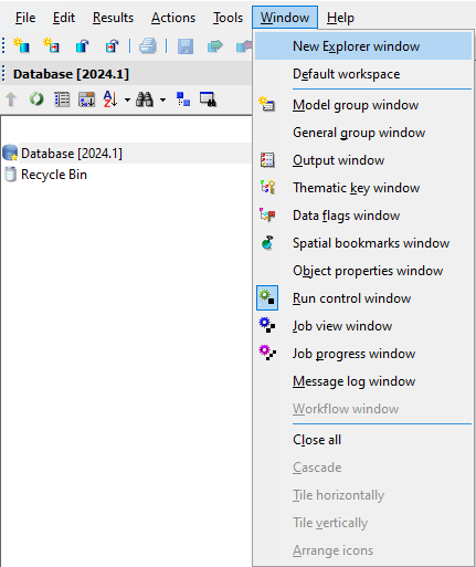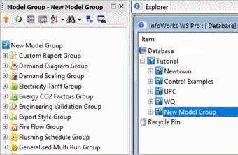 opens on the left of the screen. The Model Group window displays a similar hierarchical view to the Explorer window but only one model group is shown.
