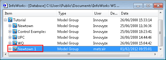 to the right so that the names of the objects in the Newtown model group are fully visible. You have now created a model group to hold your data. The contents of the model group will be displayed in the Model Group window.