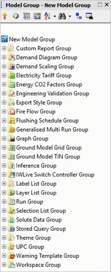 Tutorial.The model data is held in a number of subgroups within the model group. There is a different type of subgroup for each type of data. You can either create the subgroups as you need them or (as in this case) you can allow the system to generate a set of default subgroups. The subgroups are given default names, which you can change later if you wish. If the model group is in the wrong place, you will need to delete all of the subgroups by clicking the icons and pressing the