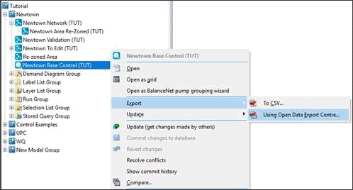 • Select the network (for EPANET format only) or the Control Data set in the Model Group window and right-click.