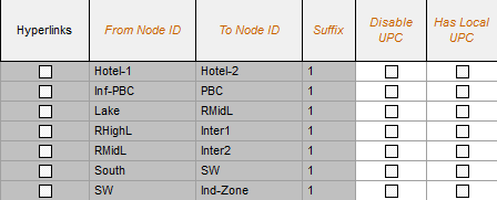 If the network has no control data associated with it, the columns will be visible, but all the cells will be disabled (coloured grey).