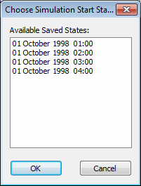 A list of the available saved states of the initial state simulation, selected in the Simulation State dalog, is displayed.