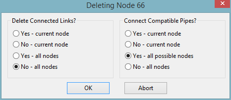 No - current node: does not join links connected to node displayed in title bar when node is deleted and then displays dialog again for the next selected node