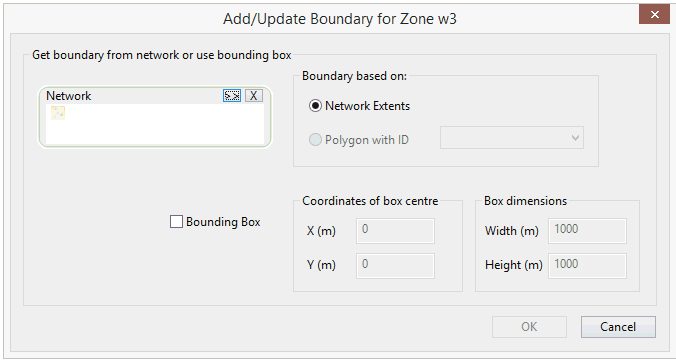 - Polygon with ID: select a network polygon from the drop-down list. A zone boundary will be created based on the network polygon boundary.