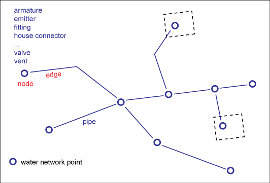 Water network topology. Network points are connected with lines. Network points must not lie on a network line.