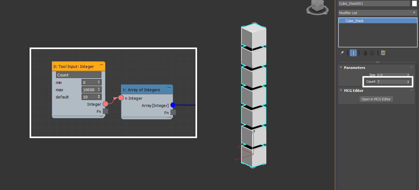 The Tool Input: Integer generates a labeled integer spinner in the rollout. This is useful for specifying whole, non-decimal numbers in the graph. Consider connecting an integer input into an Array of Integers or Array of Floats Inclusive to begin your graphs.