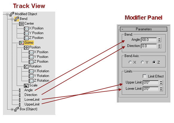 A modifier plug-in may have parameters which are animated or which are constant. The developer decides which of the modifier's parameters may be animated. Typically in 3ds Max, every parameter is animatable (provided it makes sense). For instance, the angle and direction parameters of the Bend modifier are animated while the Axis of the bend is not.