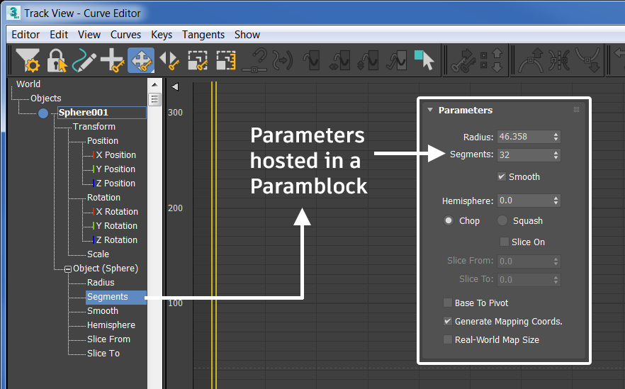 is called with time not equal to 0, and animation starts, a new instance of the default controller for the parameter type is plugged in to the parameter block and initialized with the parameter's values. The parameter block also handles displaying animated parameters in the track view.