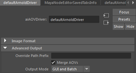 - The Arnold driver should appear in the attribute editor. Select Merge AOVs. This will combine the 'Z' AOV with the rendered EXR as one file.