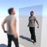 There are limitations to using a 'Z' depth AOV. For example, it is not possible to focus on an object reflected in a mirror (see below):