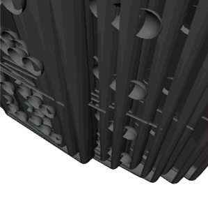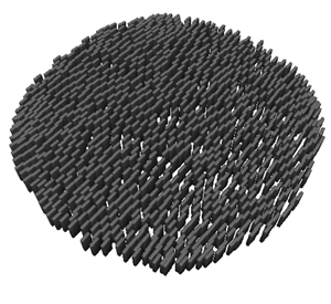 The images below show varying Twist Width values with primitives generated both Randomly across the surface and In uniform rows and columns: