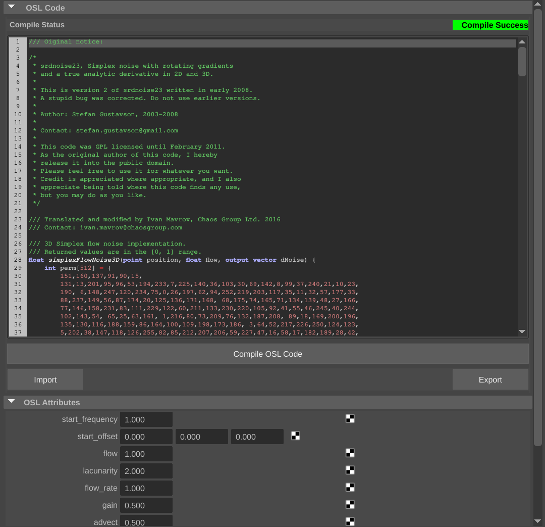 • Improved OSL Code Editor behaviour: the OSl editor for the aiOSL node has been improved to allow better felxibility when editing code. It no long re-compiles after each edit and will allow the user to save work-in-progress code. (MTOA-1152)