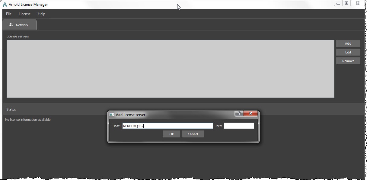 In the Add License Server dialog box, type the name or IP address of the license server in the Host text box.