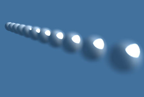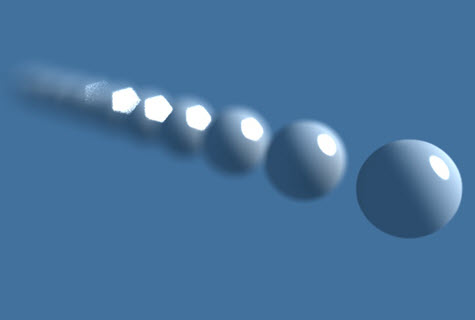 The following images demonstrate the effect of different camera depth of field values. The examples below use a sphere which has a radius of 1 (remember that scene scale size can affect the DOF values that you use).