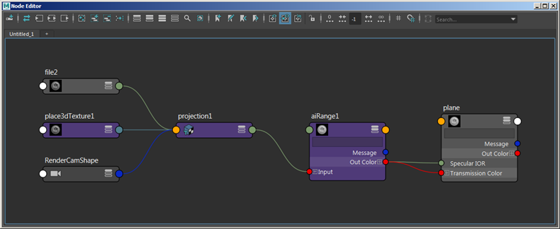 - Connect the Image shader to the projection_color of the camera_projection shader.