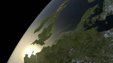 The Earth's surface is looking a little bit flat. We can add some elevation to the surface using the displacement map - 'Earth Elevation'.