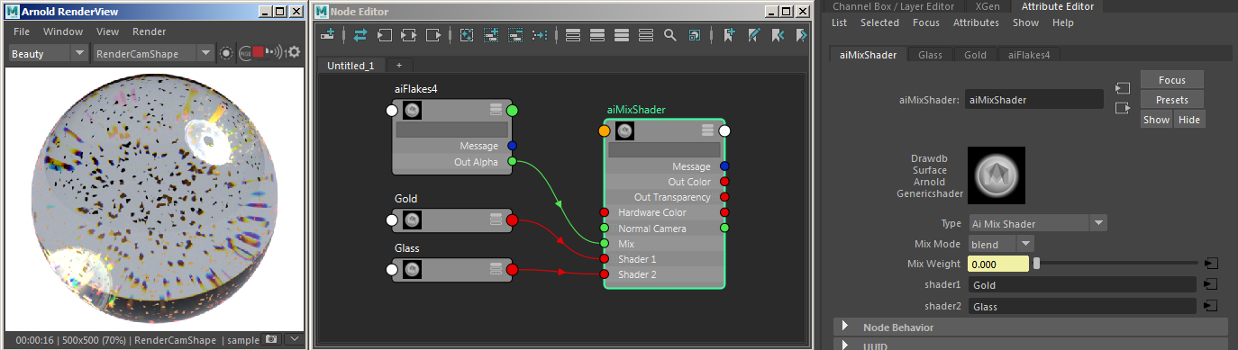 flakes -> normal_camera and metalness of _standard_surface _(via a range shader)