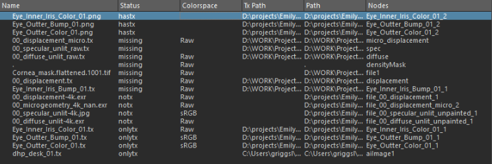 The 'Tx Manager' can be used to automate the process of converting Maya texture files and Ai Image files to .tx file format directly within Maya. It enables the conversion of textures from within the current scene or all of the textures within a folder (and its subfolders). You can also specify if you want to convert specific textures. The Tx Manager can be accessed from both the Arnold menu and the MtoA shelf.