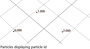 Displays the current values of any attribute of the particle object. This is useful when you want to know the value of an attribute such as velocity at a certain frame. By default, Maya displays particle ids for the Numeric render type.