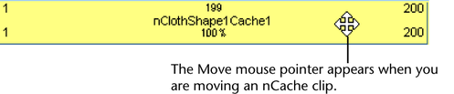 - To move your nCache clip forward or backward in time, drag the cache clip from side to side.