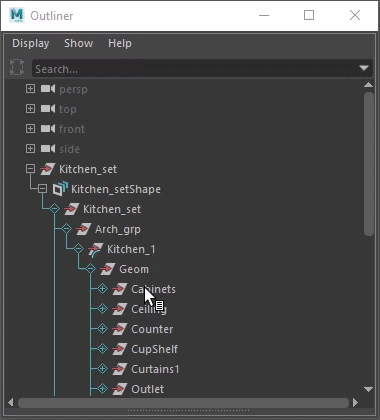 Groups are built off of the Model Hierarchy in MayaUSD, the model hierarchy defines a contiguous set of prims descending from a root prim on a stage, all of which are models. Model hierarchy is an index of the scene that is, strictly, a prefix, of the entire scene. All prims must adhere to the following three rules: