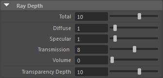 Ray Depth allows you to configure settings that limit the ray recursion based on ray type. Higher values will increase render time.