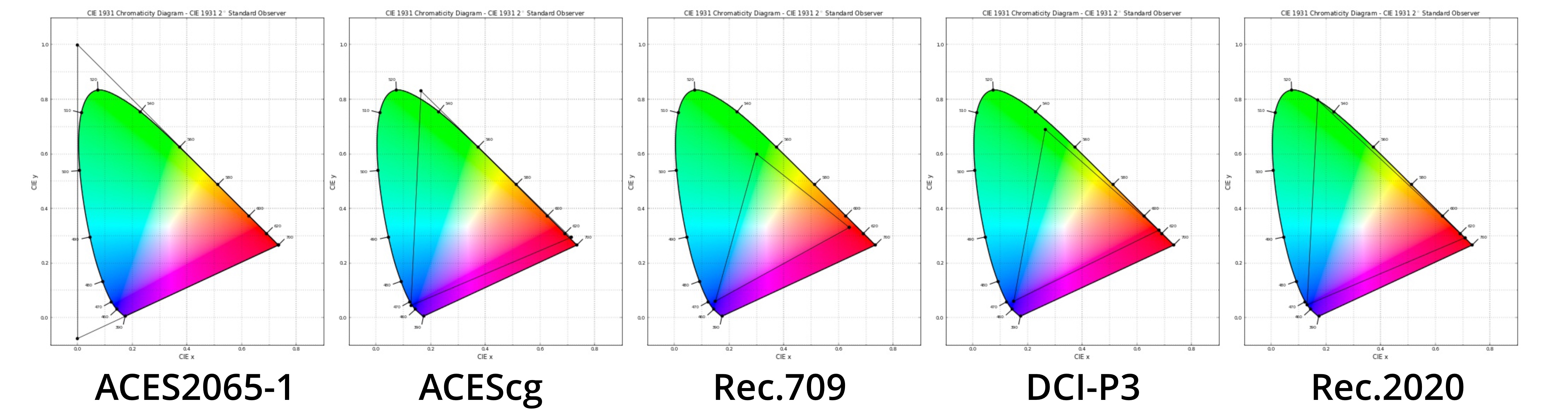 ACES contains different color spaces, we will look at the main ones: