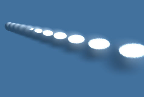 The following images demonstrate the effect of different camera depth of field values. The examples below use a sphere which has a radius of 1 (remember that scene scale size can affect the DOF values that you use).