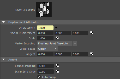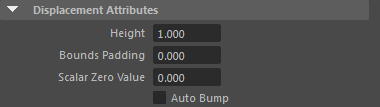 It is possible to set displacement settings on a per-face or per-object basis. However, any values that are entered in the Arnold attributes of the displacement node will override those settings. With multiple displacement shaders per object, and since an object can only have one value of bounds_padding, Arnold takes the maximum value from all of them. Autobump poses the same problem as with padding, and so Arnold enables it if at least one of the displacement shaders has it enabled.