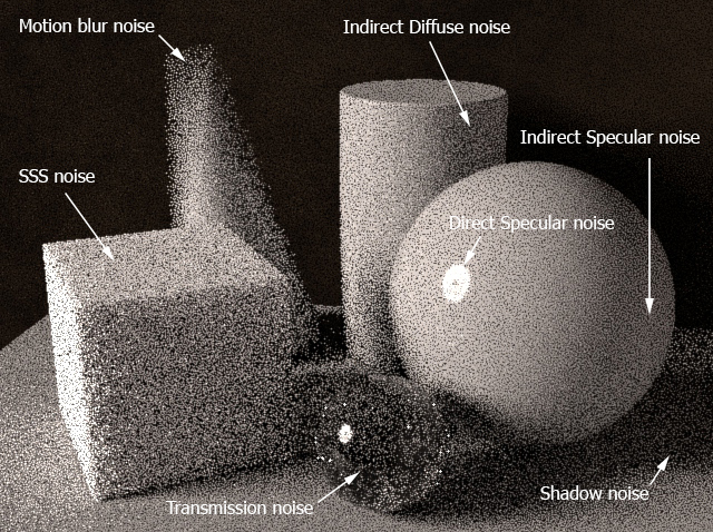 - Noise could be caused/exacerbated by non-energy conserving shaders, networks or settings.