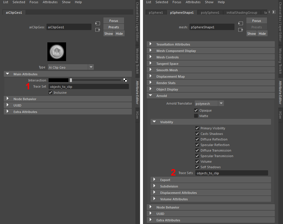 Trace Set name (objects_to_clip) given to clip_geo shader (left) and clipping object (right).