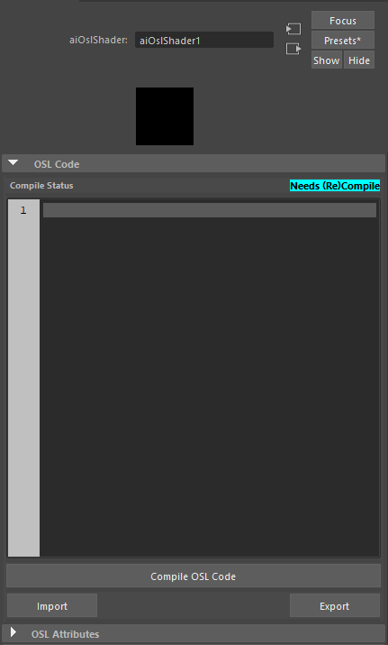 - The shaders must have unique names. If the name conflicts with an existing shader, the OSL shader won't load. You should see a warning in the log in this case.