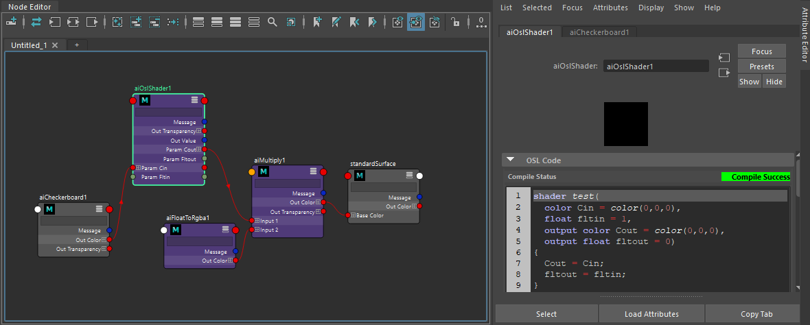 - The name of the output attribute (or any parameter) will be different as Arnold adds a param_ prefix to all OSL parameters.
