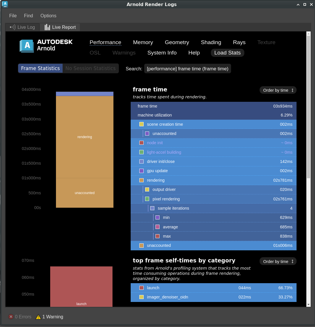• ARNOLD-17151 - Fixed an incorrect "Rendering CPU utilization was only 0%" message being reported when utilization was greater than 0%.