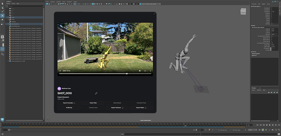 - Option 2: Export AI motion capture (just the animated skeleton), then import the result into Maya and retarget the motion to your own character.