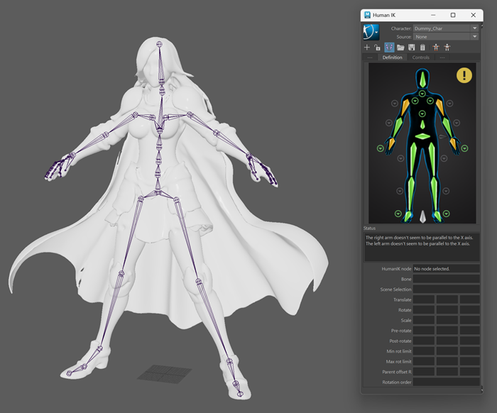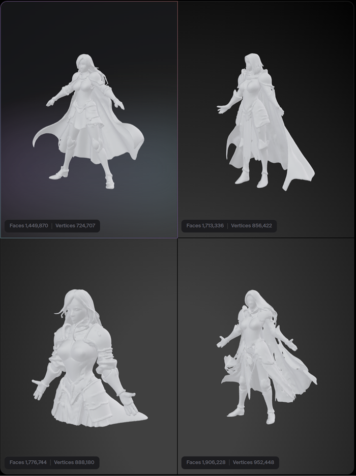 - If using a text prompt: Describe the character using a mix of visual terms and 3D structural terms. For the latter, use phrases like "parallel to the x-axis" to describe positions. If intending to generate a character to be rigged in Maya, make sure the character is generated in a neutral stance, as close to T-Pose as possible (AI can struggle with this, so don't expect for it to be perfect). It can be helpful to use Text to Image first to dial in the look and pose of the character, then use that image as input for
