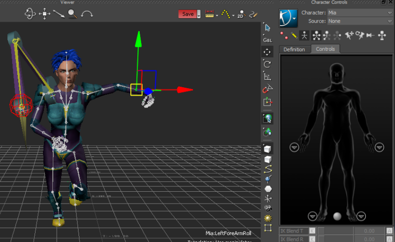 LeftForeArmRoll) contains animation as shown in the following figure. If you select the character's input to None (usually, the input is automatically changed to None), the character still moves when played. It indicates that the animation is plotted to the skeleton, and the character does not require any input to move.