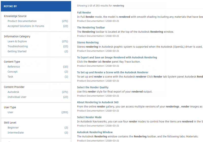 When you work online, and you enter keywords or a phrase in the InfoCenter search box, it searches the contents of the Navisworks online help, forums, and articles.