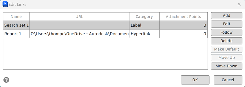 Note: You can also move links up and down the list using the Move Up and Move Down buttons, or by dragging them to their new position in the list. The link at the top of the list is the default link.Click OK.