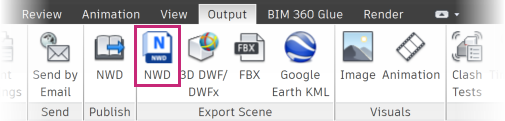 You can now configure and export NWD files out of Navisworks using the new Output tab > Export Scene panel > Export NWD option.