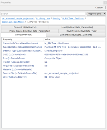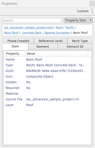 Once brought into Navisworks, the object properties can be examined in the Properties window.