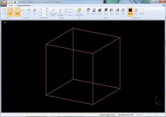 - Double-click with the Left mouse button in the 3D display within the bounding box to add junctions for your lattice unit. You can add junctions in any camera view, however you may find it easier to do so in the Top, Front or Left camera views.