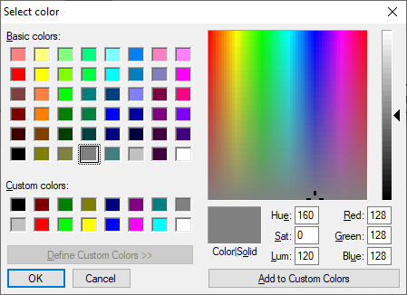 In all cases, the operating system's standard color selection dialog is used to actually pick the color.